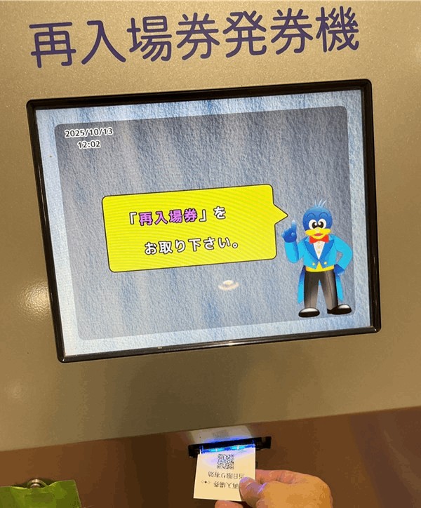 「再入場券」は再び入場する時に必要なので、無くさないように大切に保管しておきましょう。